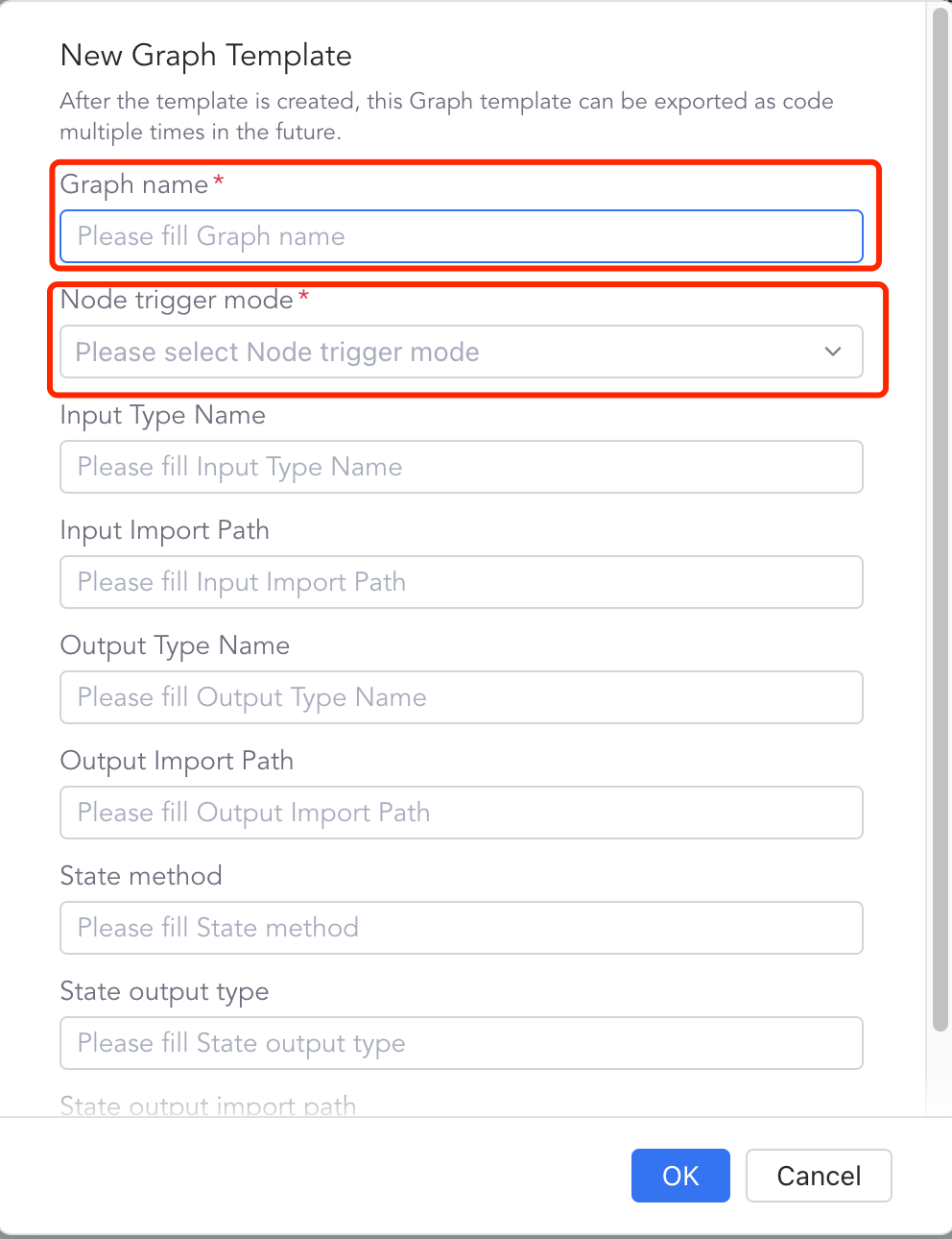 • 点击添加插件,则弹出创建对话框,根据字段说明补充配置信息,即可生成一个 Graph 编排对象。