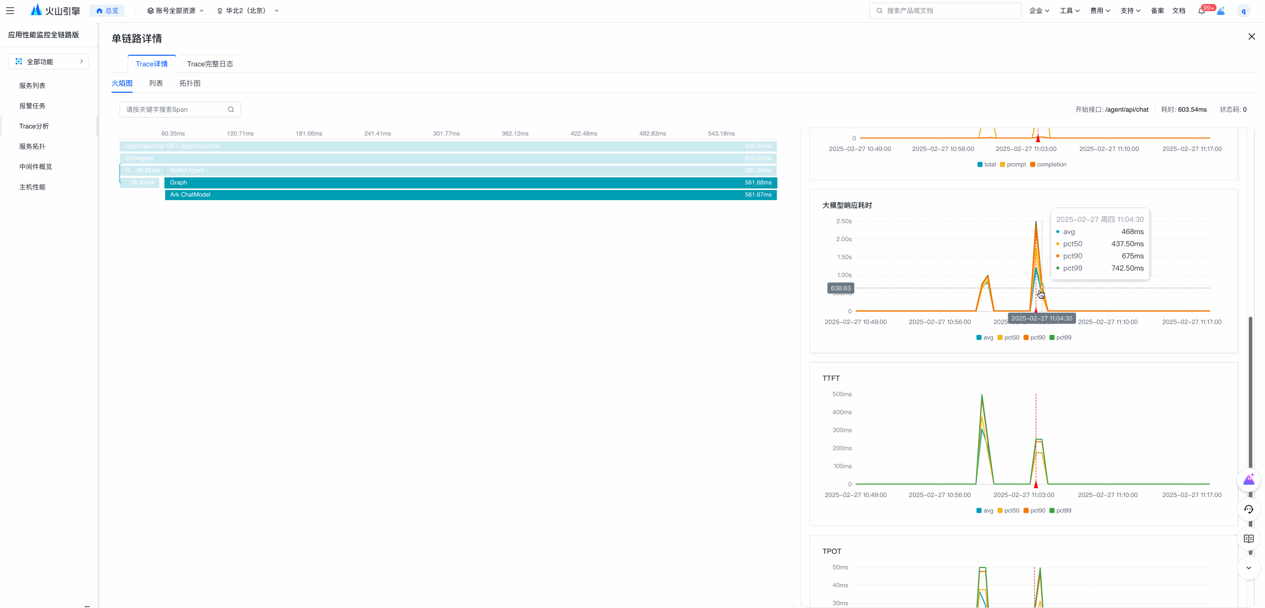 Eino 基于 graph callback 能力封装了 APMPlus 的 trace 和 metrics 能力(参见 文档控制台