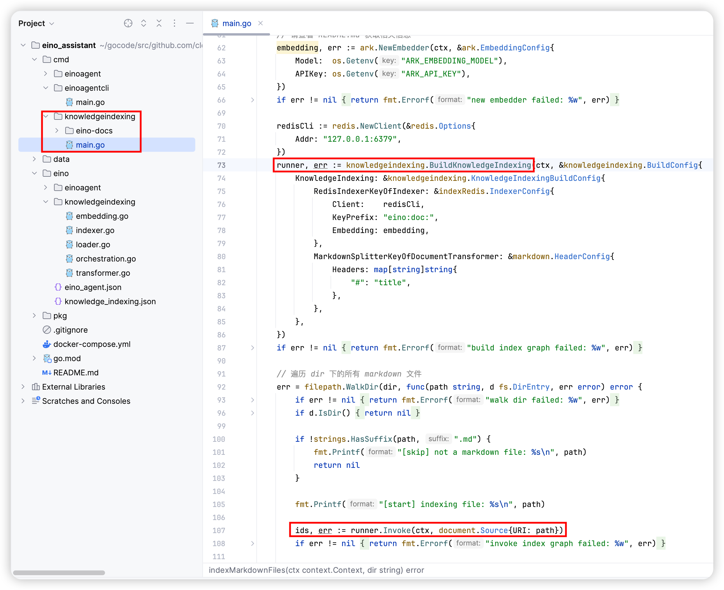 # 因示例的Markdown文件存放在 cmd/knowledgeindexing/eino-docs 目录,代码中指定了相对路径 eino-docs,所以需在 cmd/knowledgeindexing 运行指令