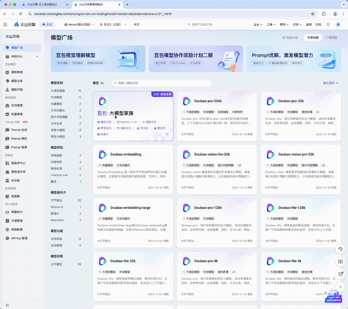 • 「火山引擎在线推理」:https://console.volcengine.com/ark